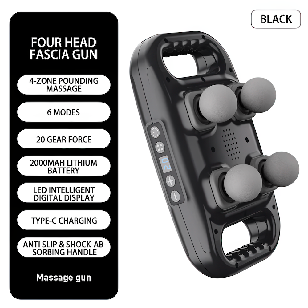 Elevate your relaxation with the Integrated 4-Head SootheTissue Massage Gun, designed to redefine muscle relief with its extensive coverage and powerful percussion. This innovative device combines the benefits of deep tissue massage and muscle sculpting offering a powerful yet gentle treatment, leaving you feeling rejuvenated and invigorated. Say goodbye to tension and discomfort with SootheTissue!